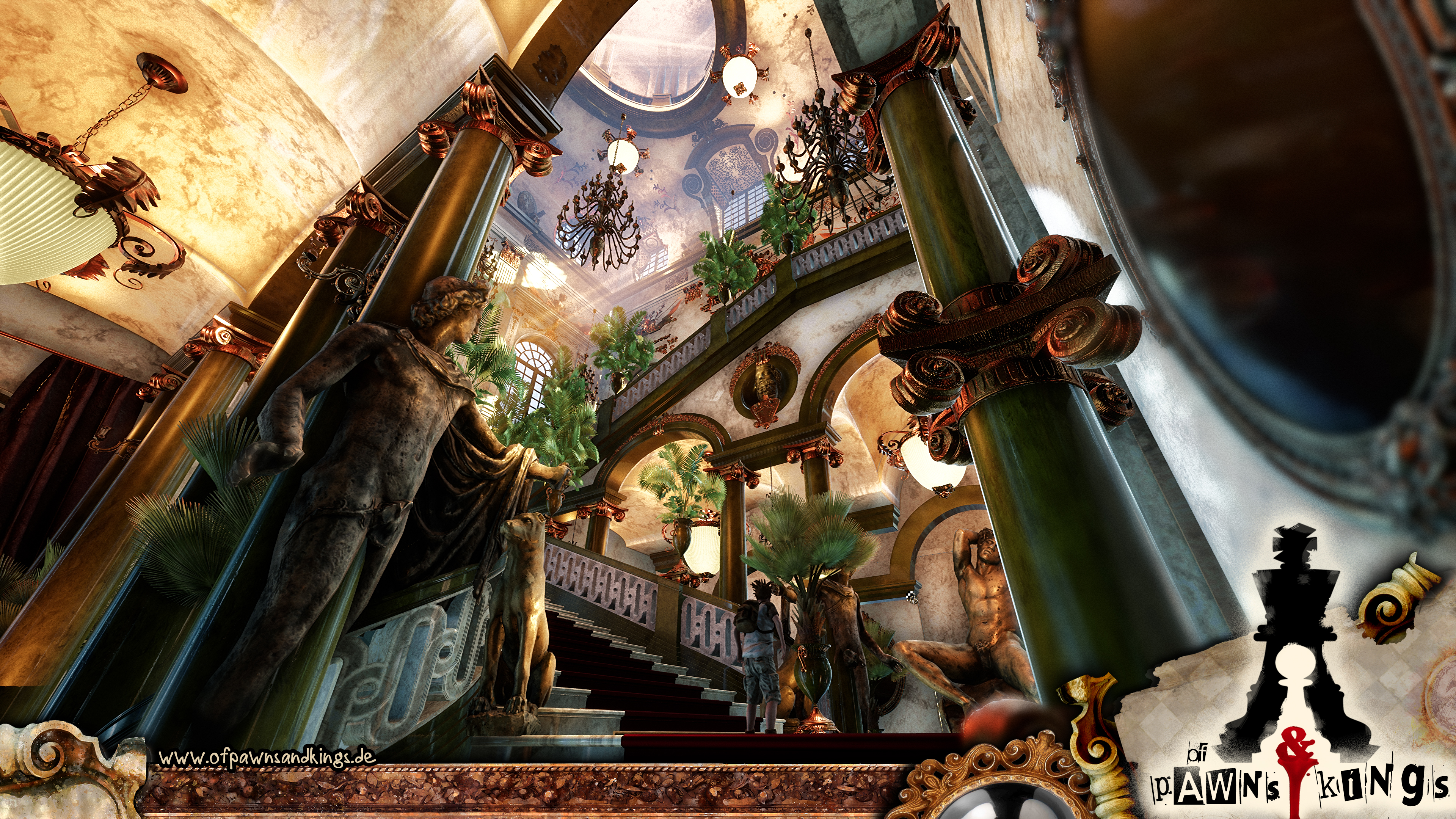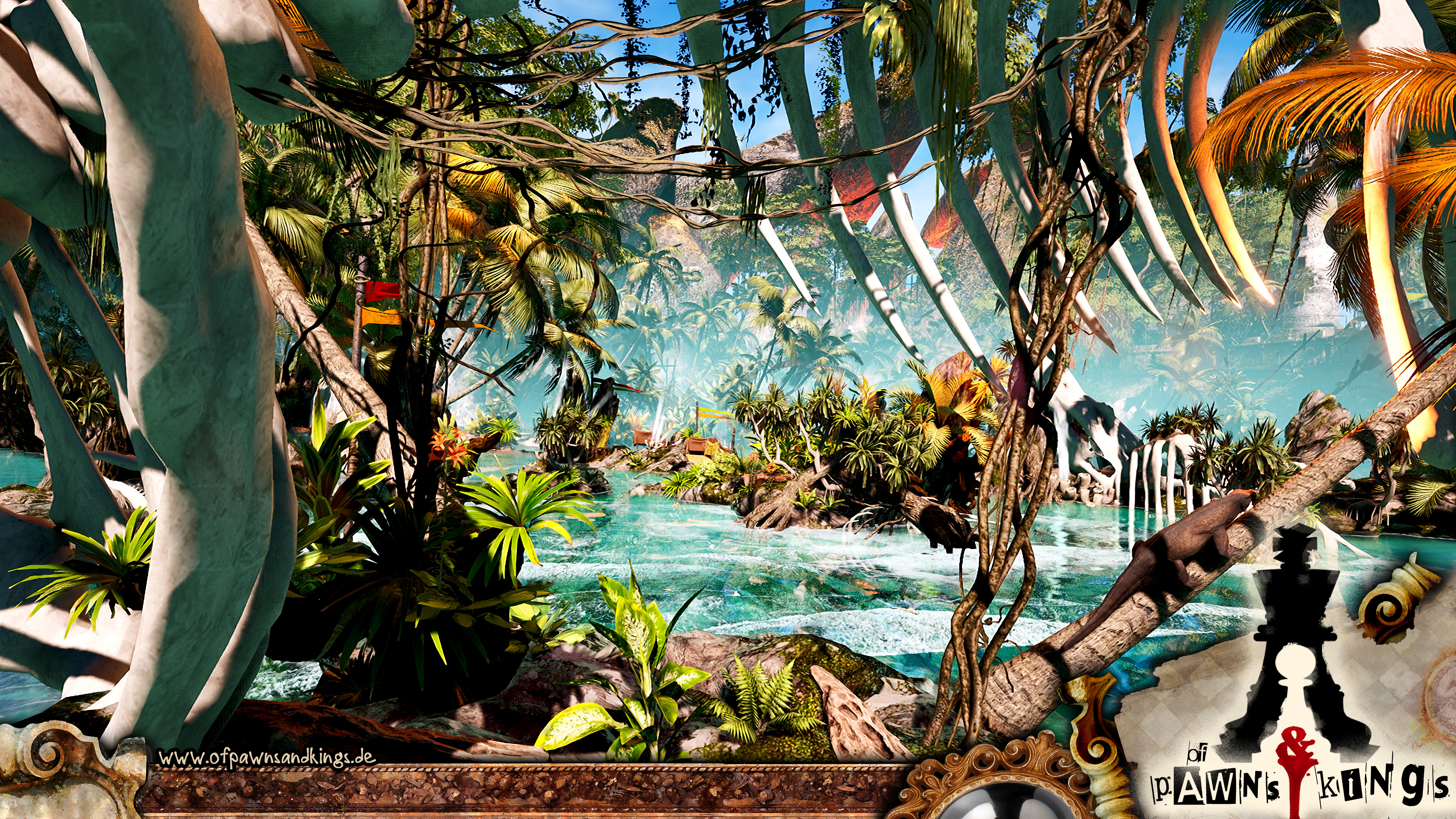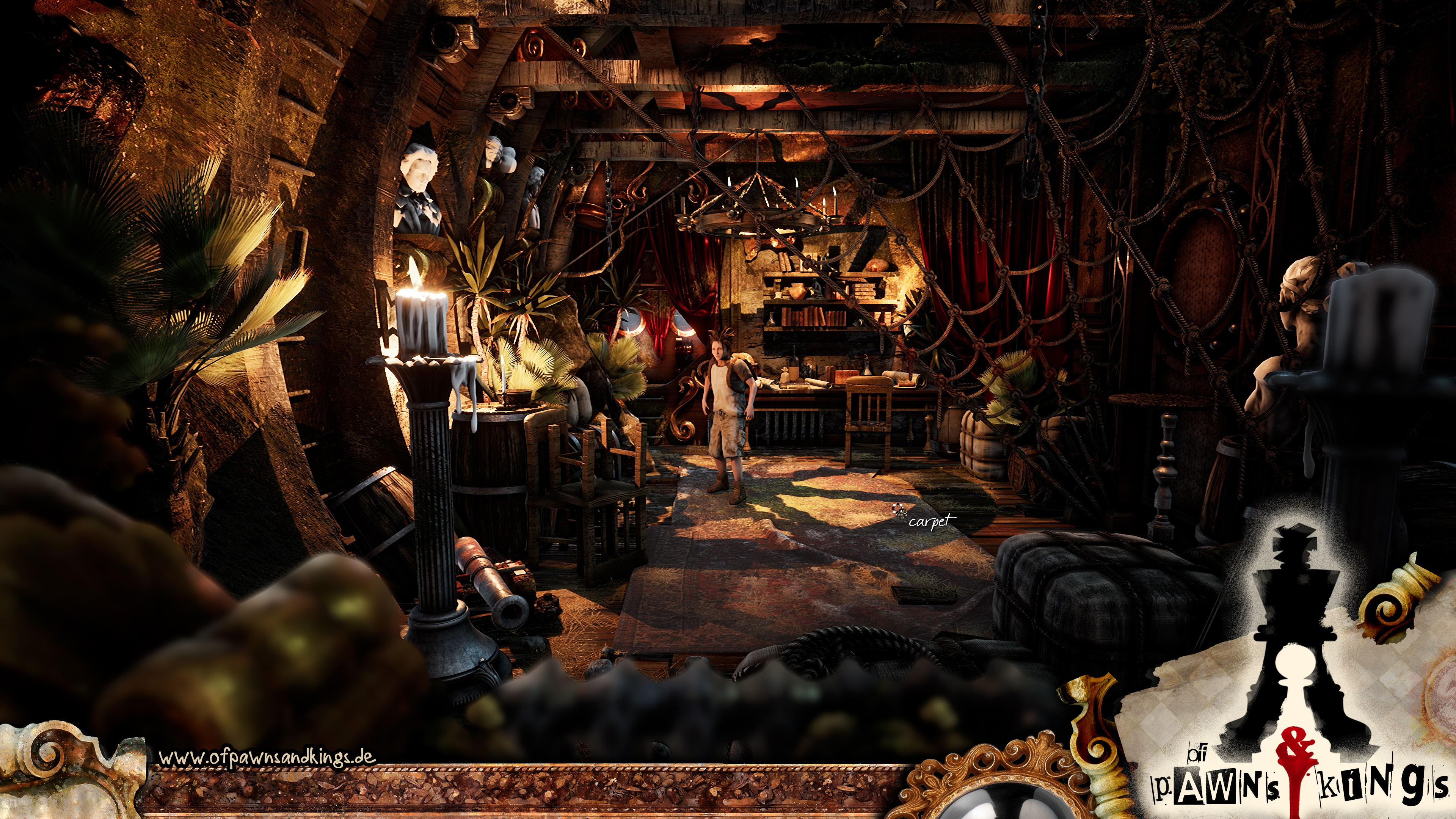 Storyof pawns and kings is a strongly story focussed adventure game. protagonist Nik - nearly grown up ,17 years old, lives together with his grandpa Erasmus on an idyllic, tropical beach, nicely furnished in an old shipwreck. His father, mostly absent, only visits him a few times a year, so Nik was raised by his grandpa, a very friendly, but somehow crazy old man, Nik loves very very much. Nik doesn't know his mom at all. Except for rare dreams of a friendly woman, Nik doesn't have any memories of her at all. Nik, till today, lived a very protected life, mainly self-determined planning his days. This changes abruptly the moment a stranger appears, starting a heated discussion with Erasmus, which ends with the disappearance of both of them. Nik is forced to leave all he knows behind to find clues and sets on a journey to search for his grandpa. On this journey he will discover many surprising things about his family, he will be forced - fleeing a mysterious stranger - to find his way through many diverse scenarios, some of them beautiful, some more frightening. He will meet friendly, fascinating, but also unscrupulous characters. Most part of the journey he will be accomplished by a sassy and impertinent toucan -named Fitzgeraldo-, who to his surprise can talk ... Fitz intentions in helping Nik most of the time don't work like they should, though... We accompany Nik on his journey, experience him growing up fast, taking responsibility and coping with fear and prejudice. Will he be able to discover all secrets, will he find help and will he finally save the ones he loves the most ? The deeper Nik delves into the history of his family the more it will astonish him and lets him discover his own part in it. A marvelous adventure with many dangers and secrets begins …